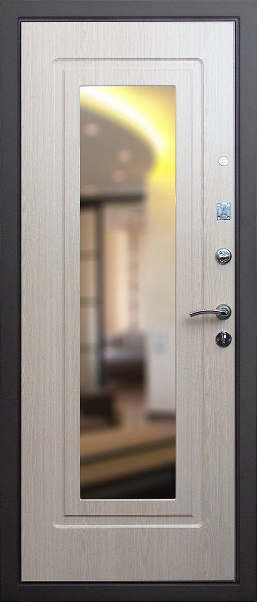 Прочная металлическая Дверь с зеркалом DZ385 по цене от 30 000 руб. под заказ в любой комплектации. Вы можете выбрать материал, замки, цилиндры и многое другое. Производим сами! Быстрая доставка и установка в Талдоме.