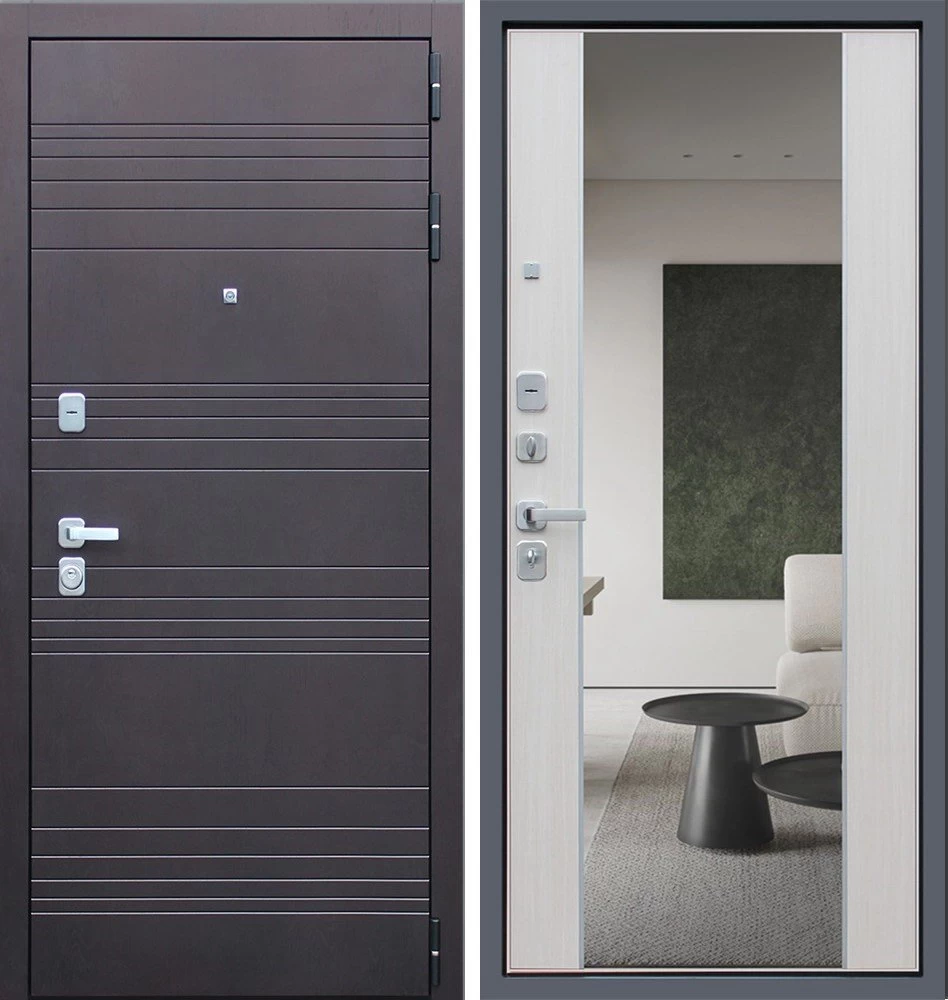 Надежная входная Дверь Дуэт с зеркалом премиум класса по цене 47 033 руб. Большая толщина стали защитит от проникновения в ваш дом, квартиру или коттедж. Используется очень качественная фурнитура: замки, цилиндры, ручки, защелки. Покрытие и отделка двери изготовлено под внимательным контролем производителя. Дверь имеет долгий срок службы и гарантию.