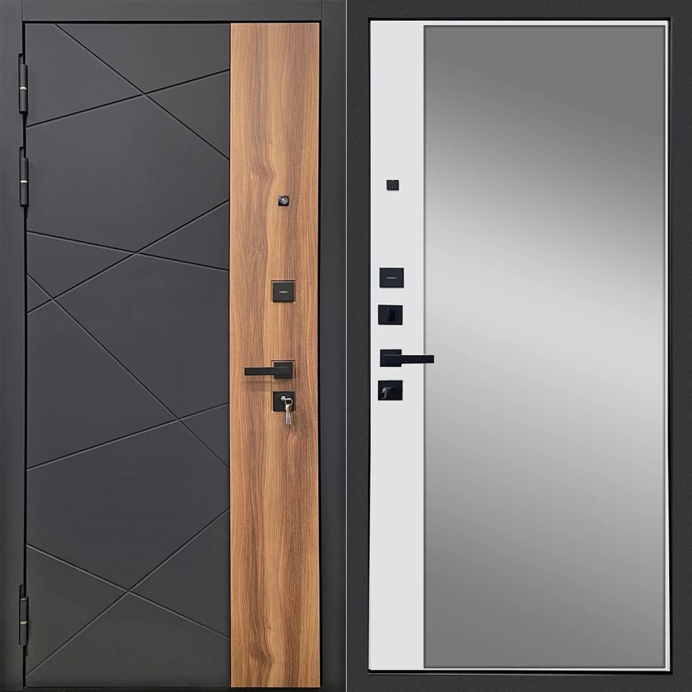 Дизайнерская входная Дверь Ратибор РАКУРС 3К ЗЕРКАЛО класса Люкс с несколькими листами стали, звукоизоляцией и теплоизоляцией. Утепленный короб и полотно защитят от сквозняков и шумов. Модель не только надежная, комфортная, защищенная и высочайшего качества, но и очень красивая! Будет отлично сочетаться с интерьером дома, квартиры или офиса. Сейчас действует выгодное предложение по цене: 55 333 руб.